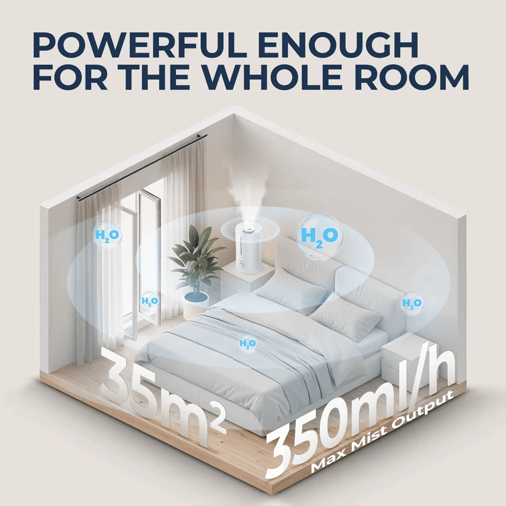 Improve indoor comfort and reduce dry air with this Ultrasonic Cool Mist Humidifier, designed for everyday use in bedrooms, living spaces, and family environments. With a 4-litre water tank, quiet operation, and adjustable mist control, it delivers consistent cool mist to help maintain a more comfortable indoor atmosphere.